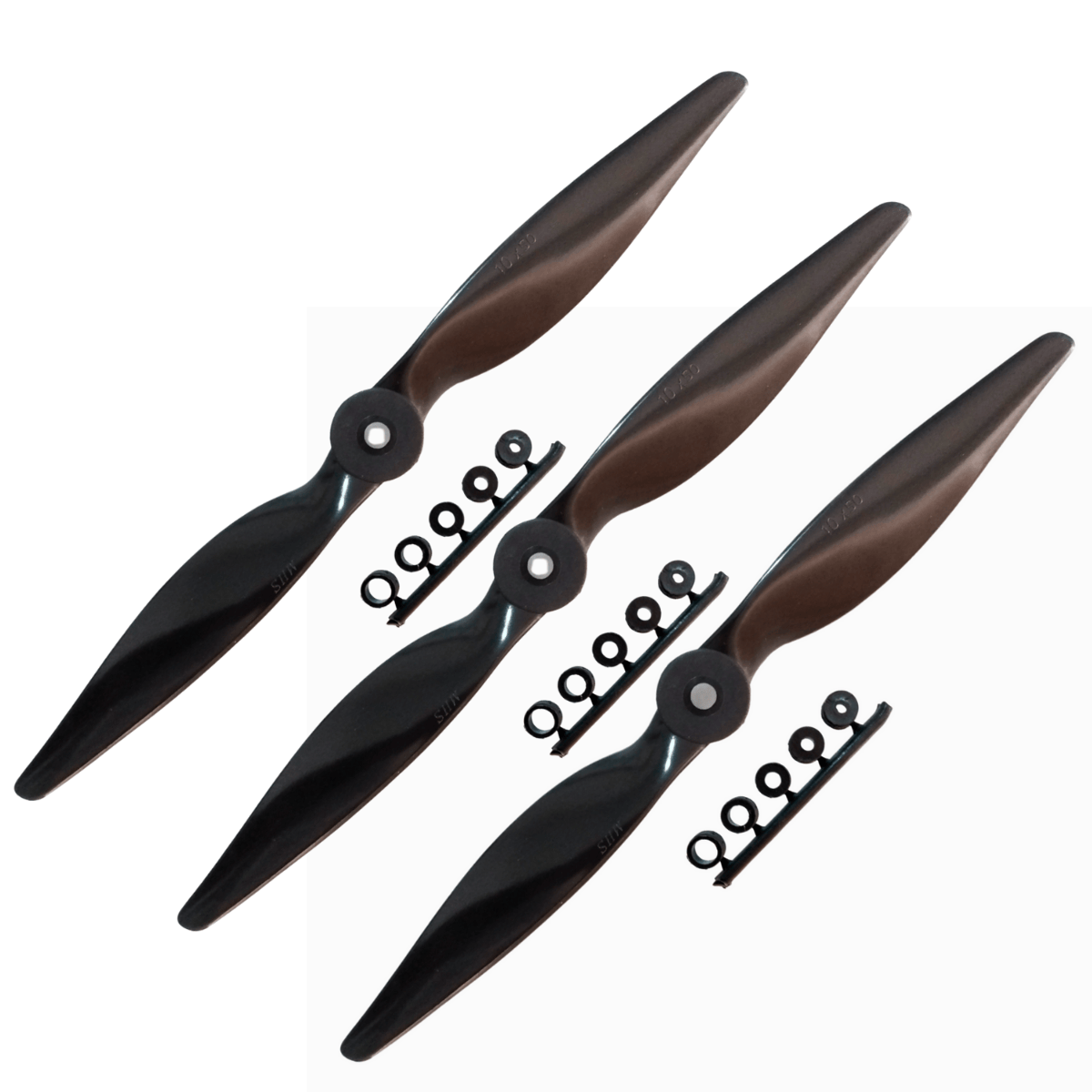É ideal para voos tranquilos, de treino e acrobacias leves. Sua configuração 10×5 oferece boa tração com baixa carga no motor, sendo excelente para iniciantes e voos suaves.