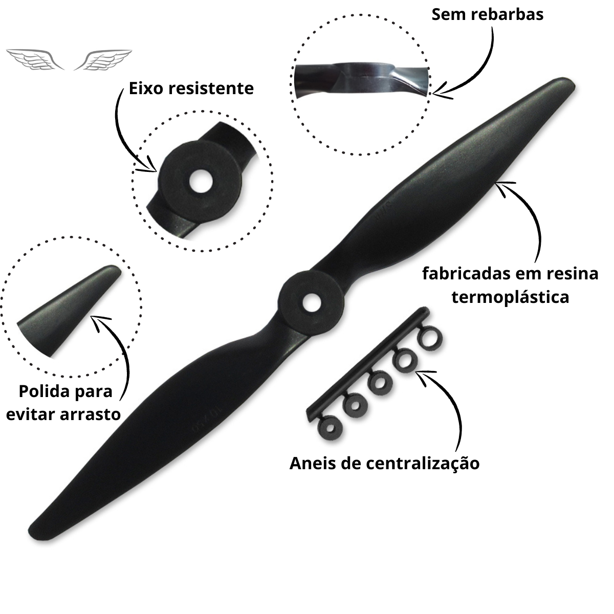 Hélice robusta estilo APC mais resistente e com passo 5 que gera um bom torque