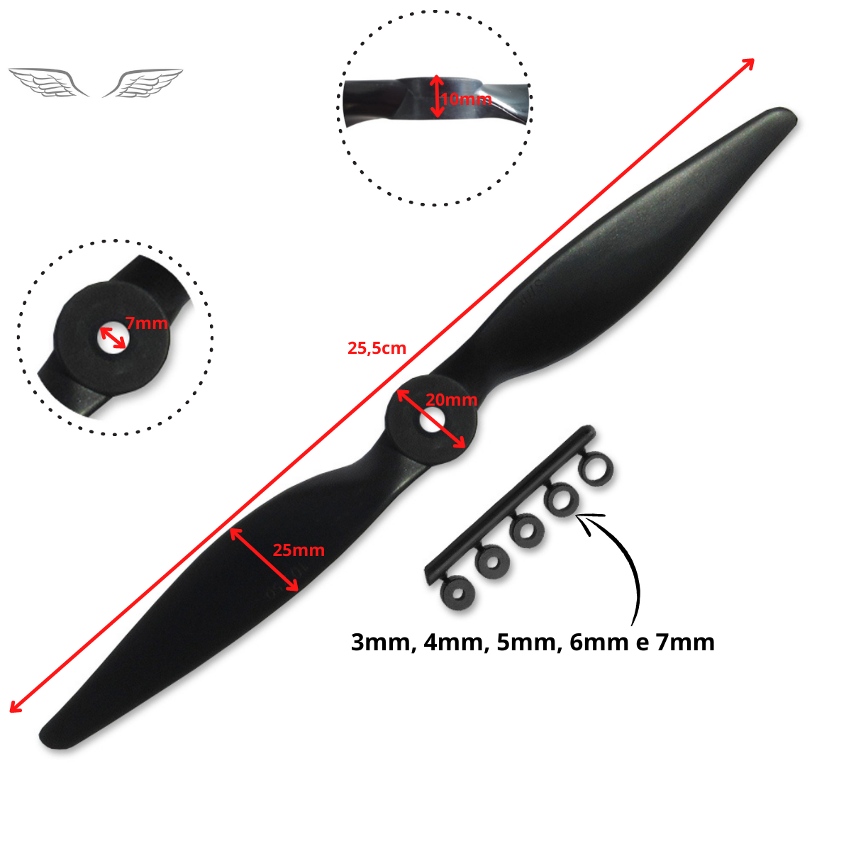 A hélice MHS Fly 10×5 foi projetada para oferecer desempenho eficiente e confiável em modelos elétricos e glow de pequeno porte. Fabricada em resina termoplástica Nylon, é leve, resistente e com acabamento refinado. Seu perfil proporciona excelente tração com menor consumo de energia, ideal para voos esportivos e treino de acrobacias suaves.