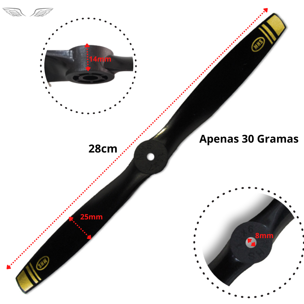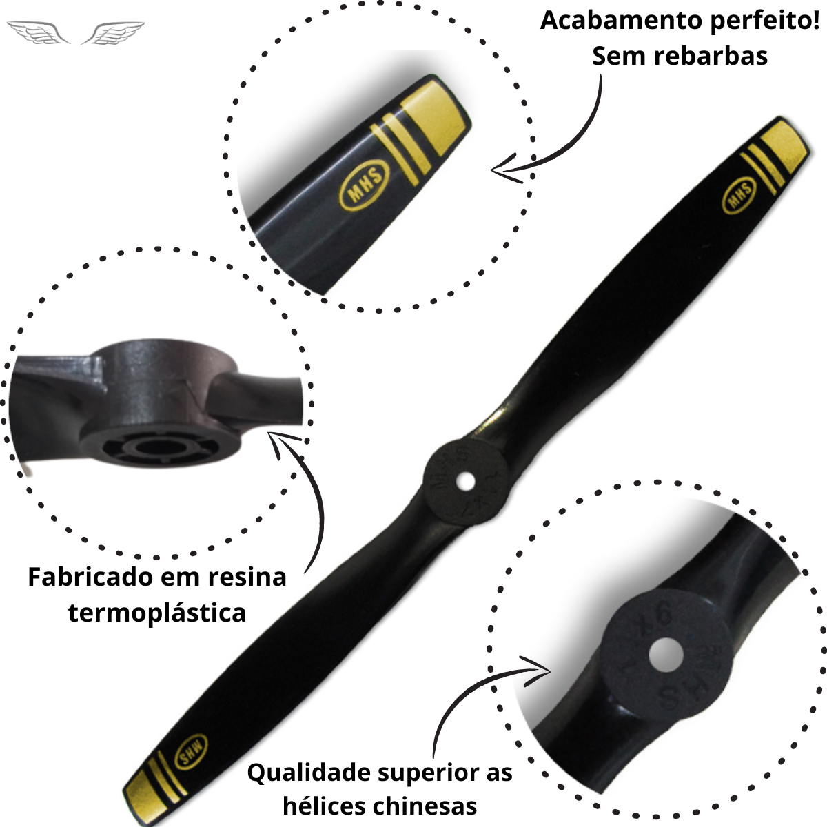 A hélice MHS Fly 11×6 glow foi desenvolvida para aeromodelos movidos a motor glow (nitro) de baixa a média cilindrada, oferecendo um ótimo equilíbrio entre empuxo, resposta e eficiência. Produzida em resina termoplástica nylon reforçada, ela alia leveza e resistência, ideal para quem busca desempenho com segurança e custo-benefício.