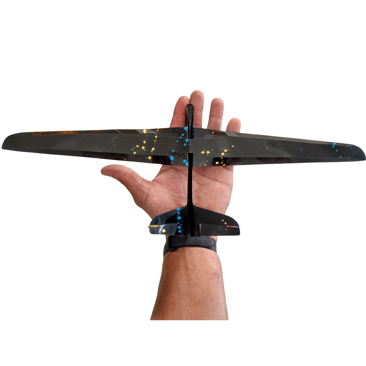 2. Segure o planador pela fuselagem com firmeza, mantendo as asas niveladas.