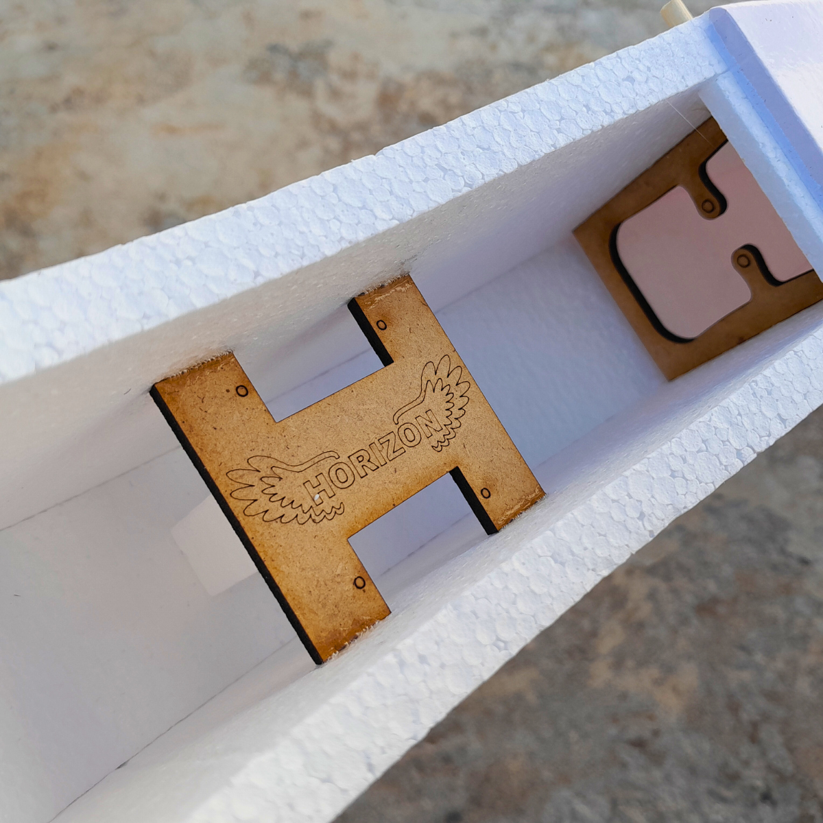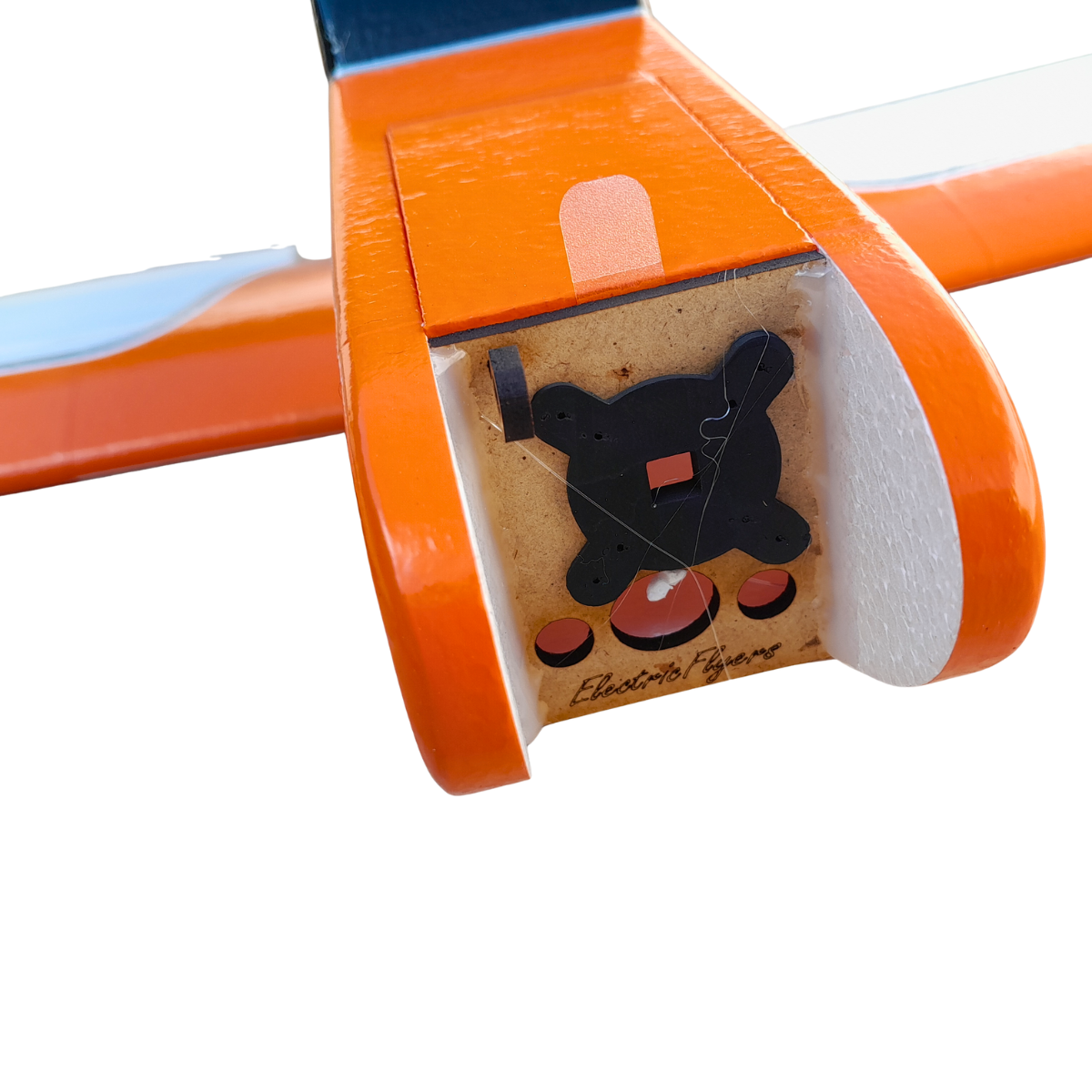 . CG já indicado com um adesivo já colado na asa.