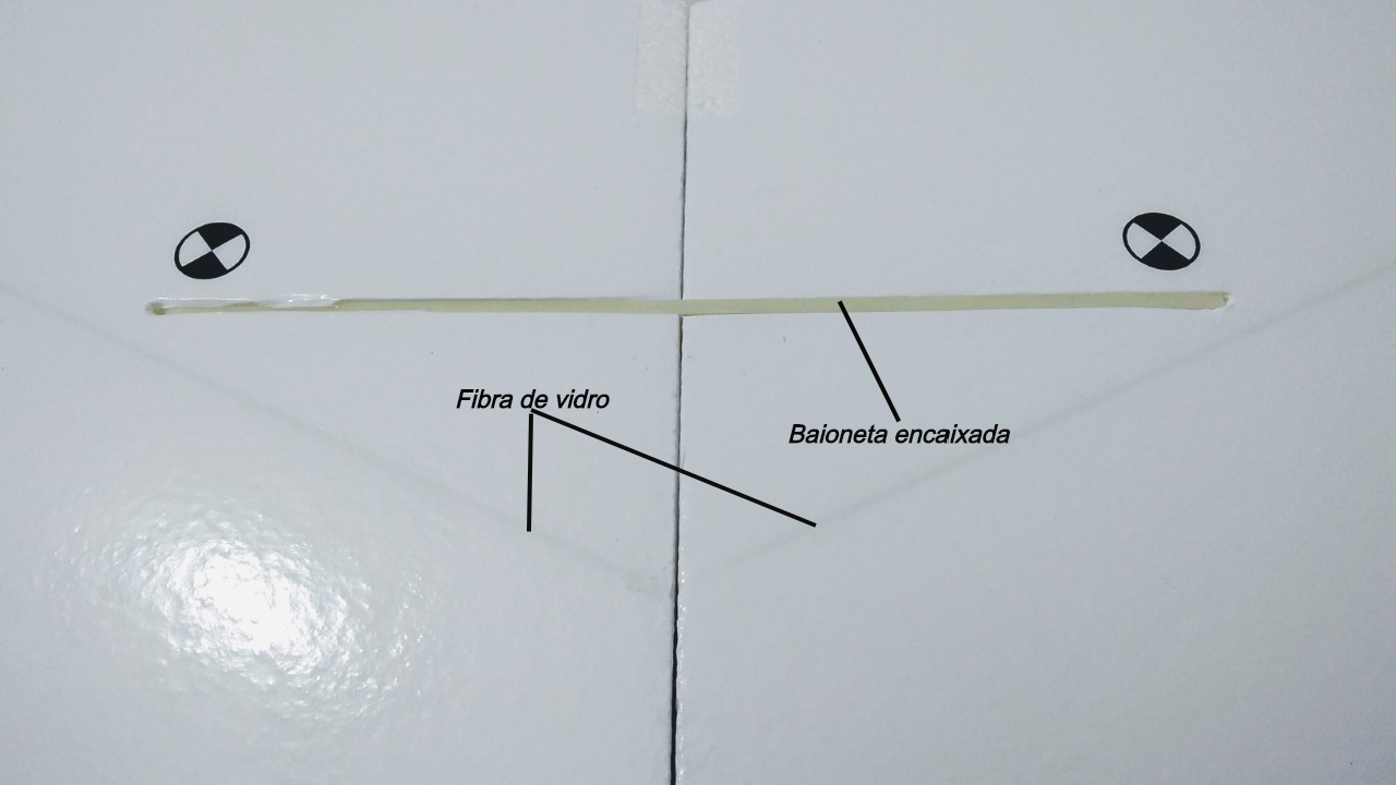 1 Asa bipartida, entelada e com as varetas de fibra de vidro e ailerons já instalados.