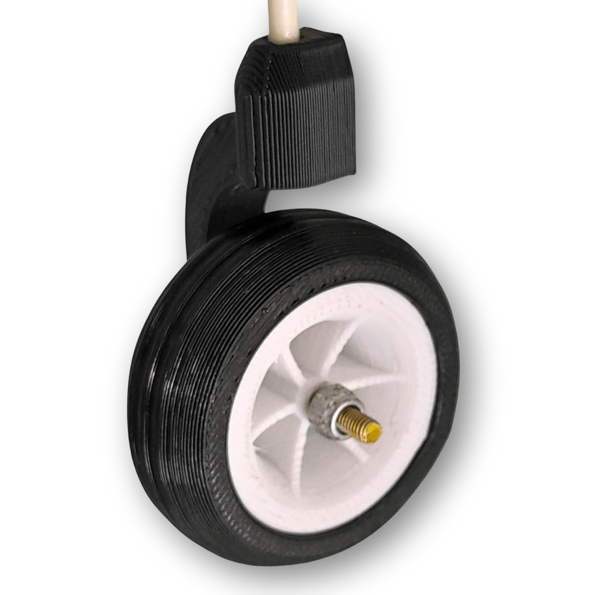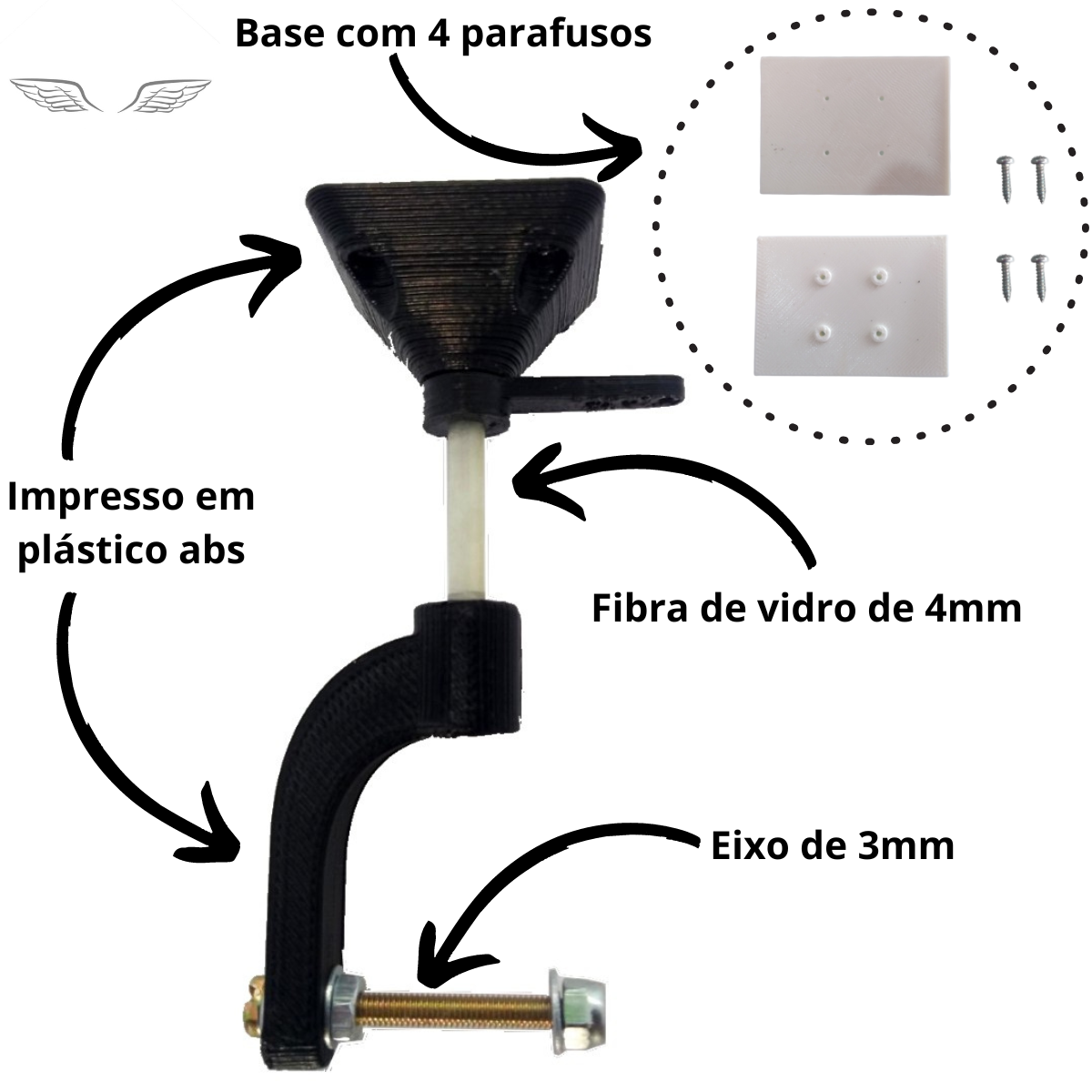 Pontos positivos da bequilha dianteira movel: Oferece excelente controle no solo permitindo taxiamento preciso mesmo em pistas curtas. Com roda de até 42mm que facilita deslocamento em piso de asfalto cimento ou grama curta Estrutura resistente com base de ABS de alta densidade e haste em fibra de vidro garantindo durabilidade Instalação simples podendo ser fixada diretamente na estrutura do aeromodelo