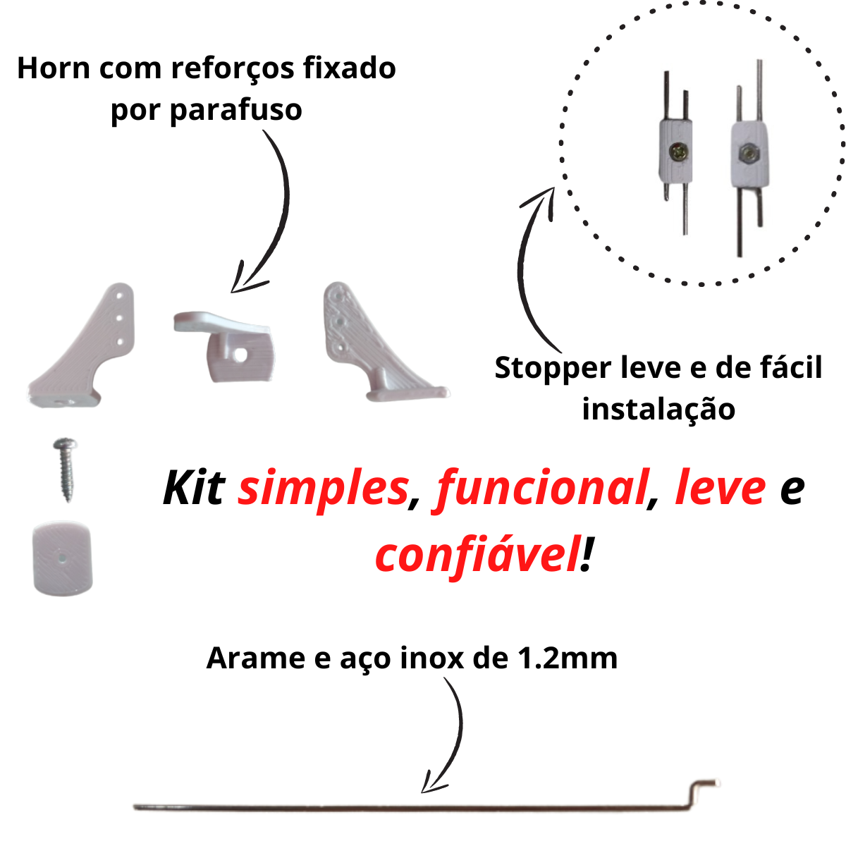 Linkagem completa — Hastes, terminais e acessórios para conectar as superfícies de controle.