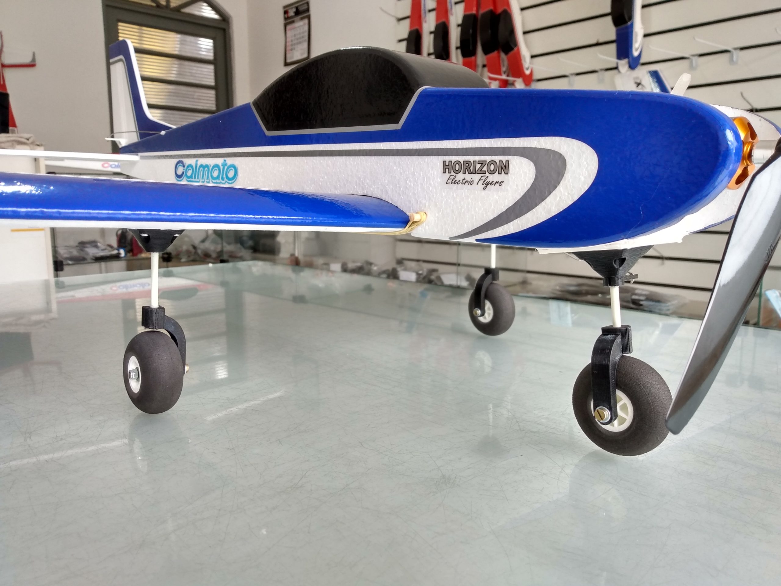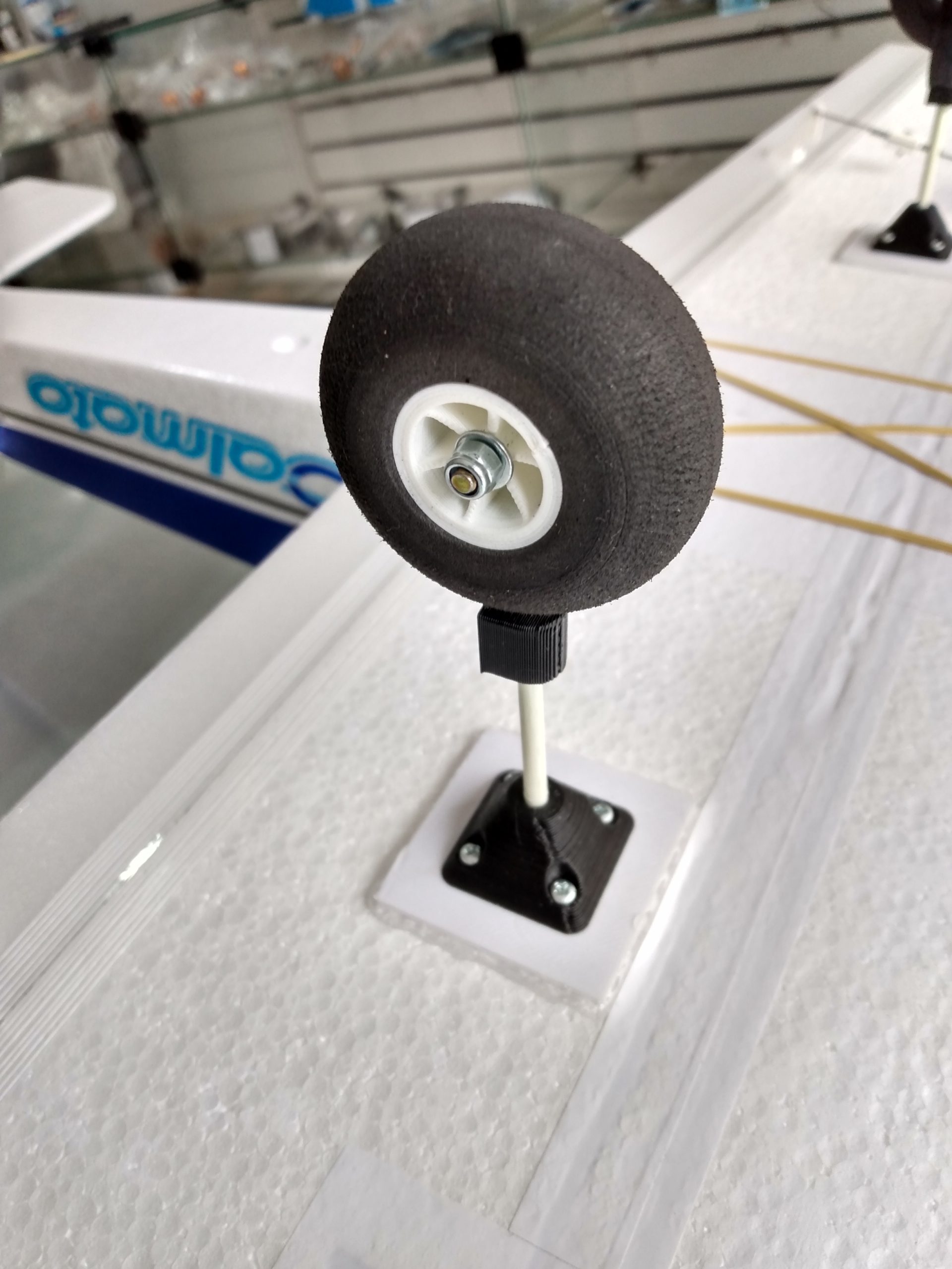 Trem de pouso impresso em ABS e já acompanha porcas e parafusos