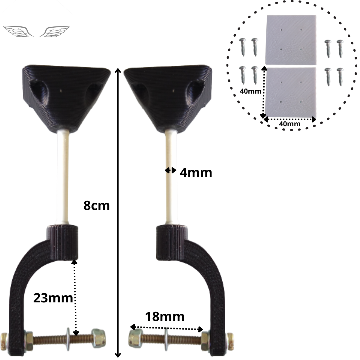 2 base de fixação de 20mm por 20mm.